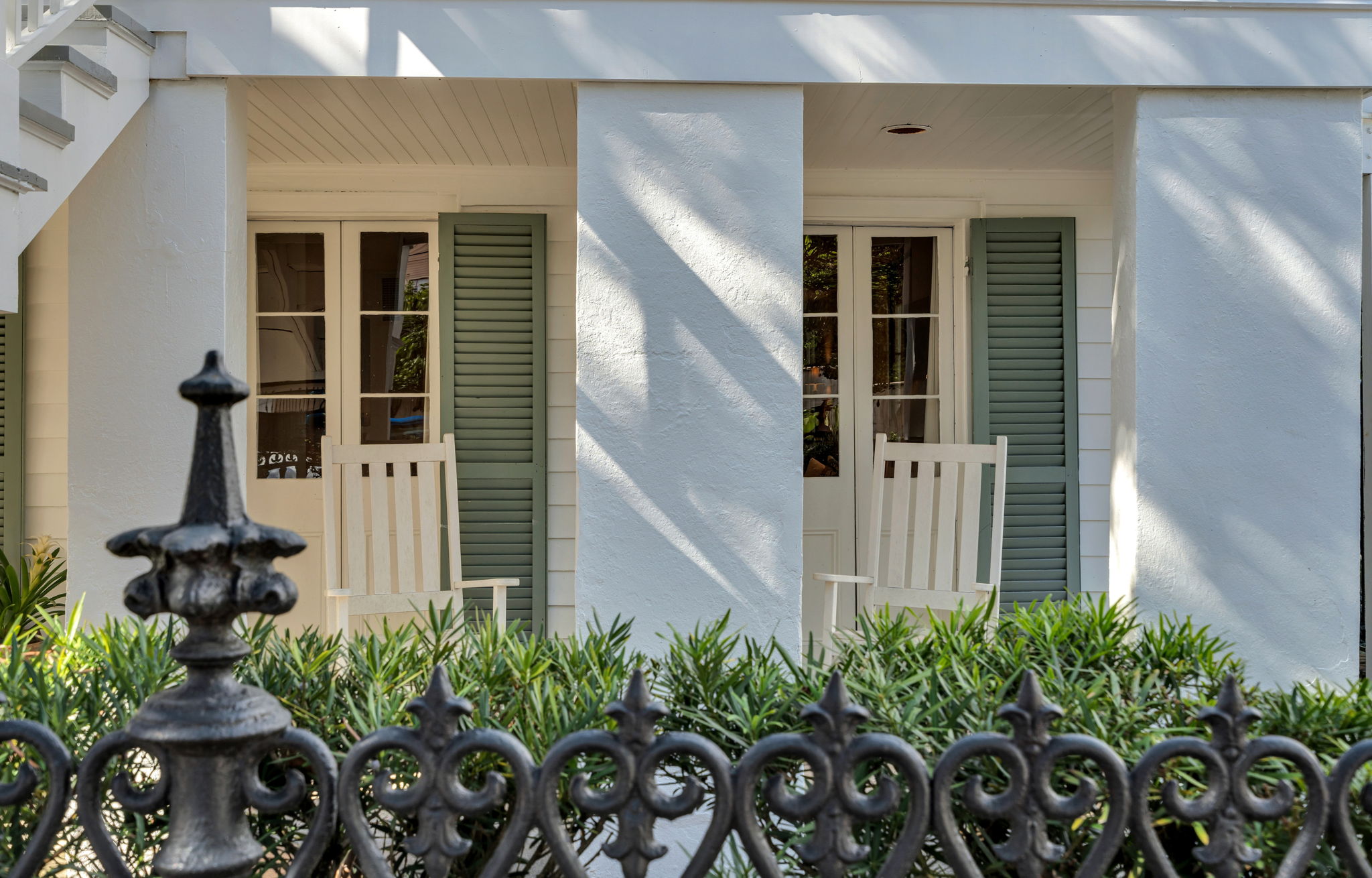The apartment is meticulously and thoughtfully designed and decorated with upscale furnishings and original artwork, balancing classic New Orleans architecture with modern amenities and conveniences to enhance your visit. Functional French doors surround the front living/kitchen area, proving an open, airy, yet private and quiet ambiance. Outdoor seating for your morning coffee and general relaxation.